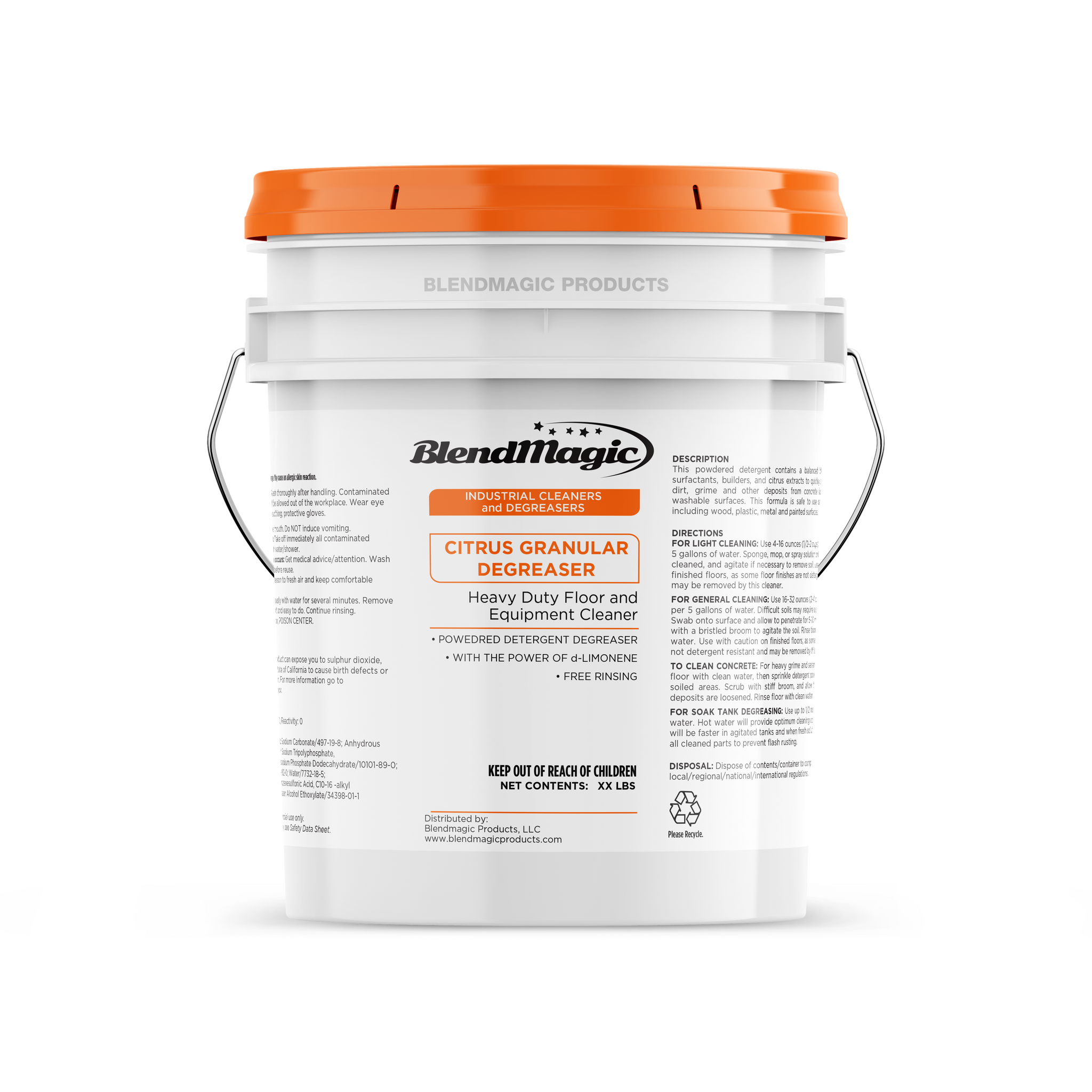 Citrus Granular Degreaser is a high-performance powdered detergent formulated to rapidly strip grease, oil, dirt, and grime from concrete floors, equipment, and other washable surfaces. This advanced formula combines special surfactants, builders, and citrus extracts, including the all-natural solvent d-limonene, to deliver industrial-strength cleaning power without harsh chemicals.